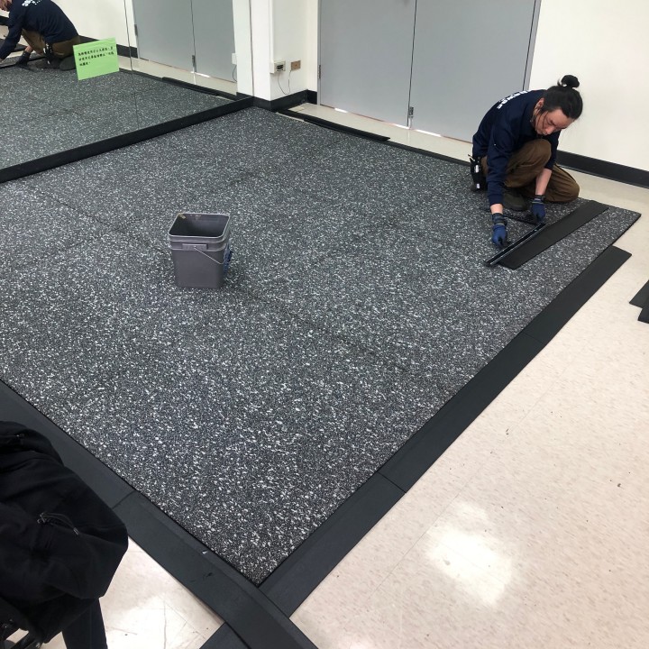 位於高樓層健身房必要時需加襯中密度ISOm隔離墊,以加強震動噪音抑制效能。
