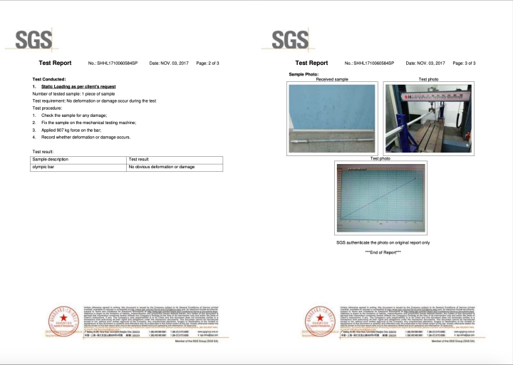 UFC奧槓經過SGS測試2000lbs(907kg)拉力測試通過