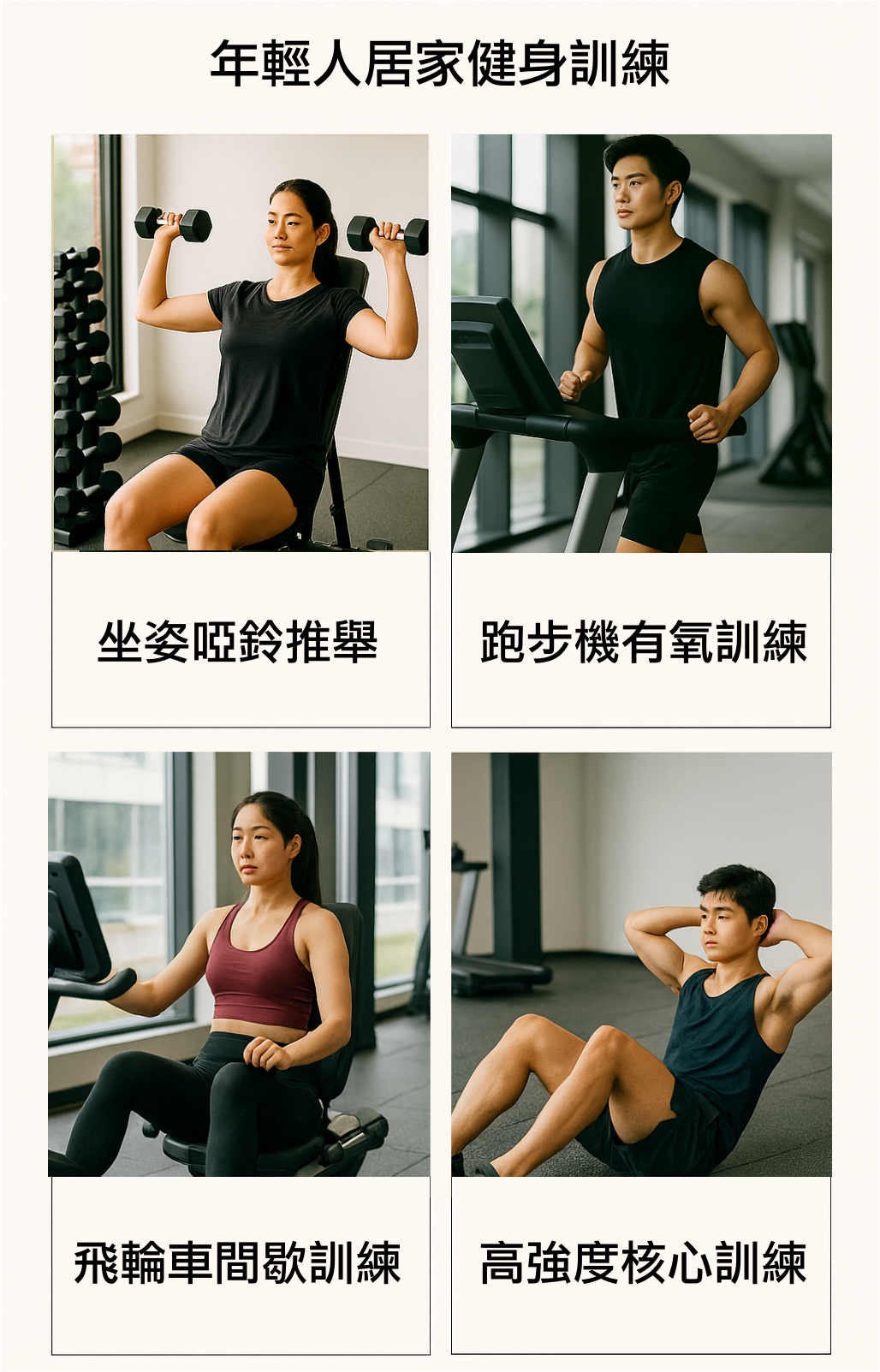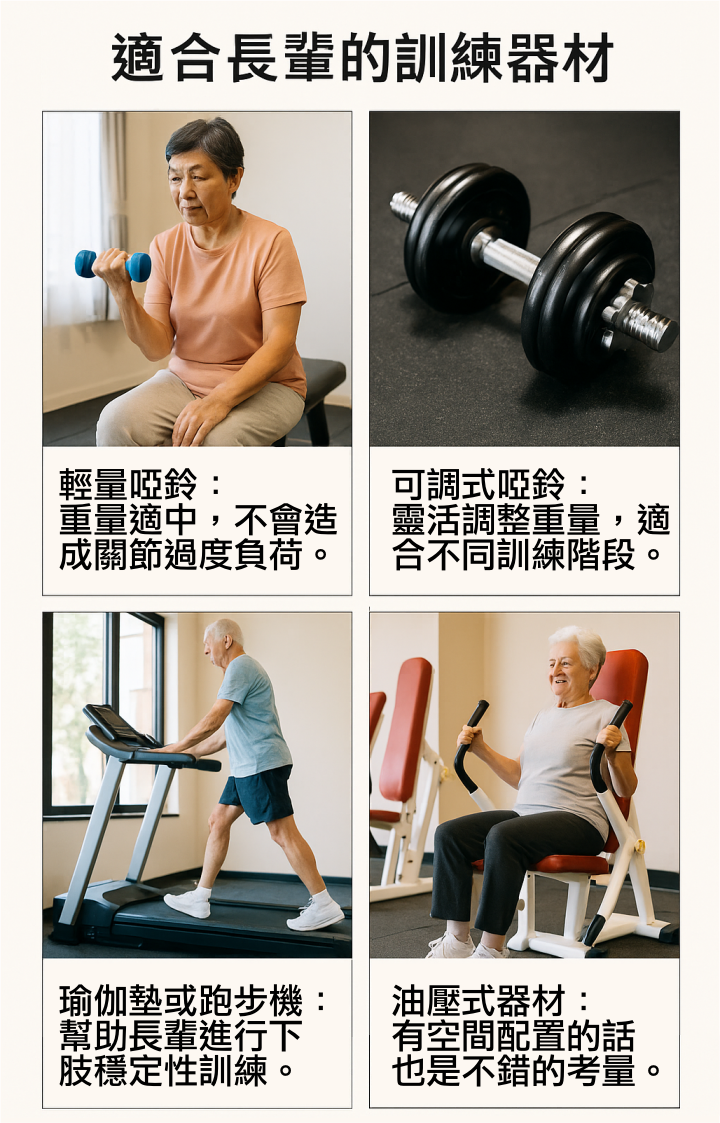 📷 ( 跑步機與飛輪車的配置) 3. 適合長輩的訓練器材