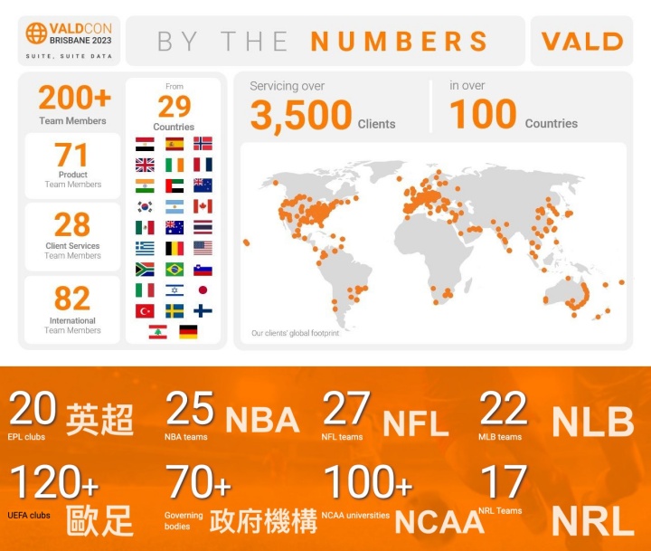 關於 VALD的存在是為了幫助健康和績效專業人士 做出更好的決策。VALD 的創新人體測量技術 被世界上 4,000 多個最精英的運動隊伍聯盟、 診所、大學、醫院和國防部門所採用。 在由研究人員、臨床醫生、運動科學家、設計師、 開發人員和工程師組成的多學科團隊的推動下, VALD 系統提供了對人體運動 表現、受傷風險和康復的大數據分析力, 運動科學不斷進步之下藉由大數據更能整合我們整個生活圈。