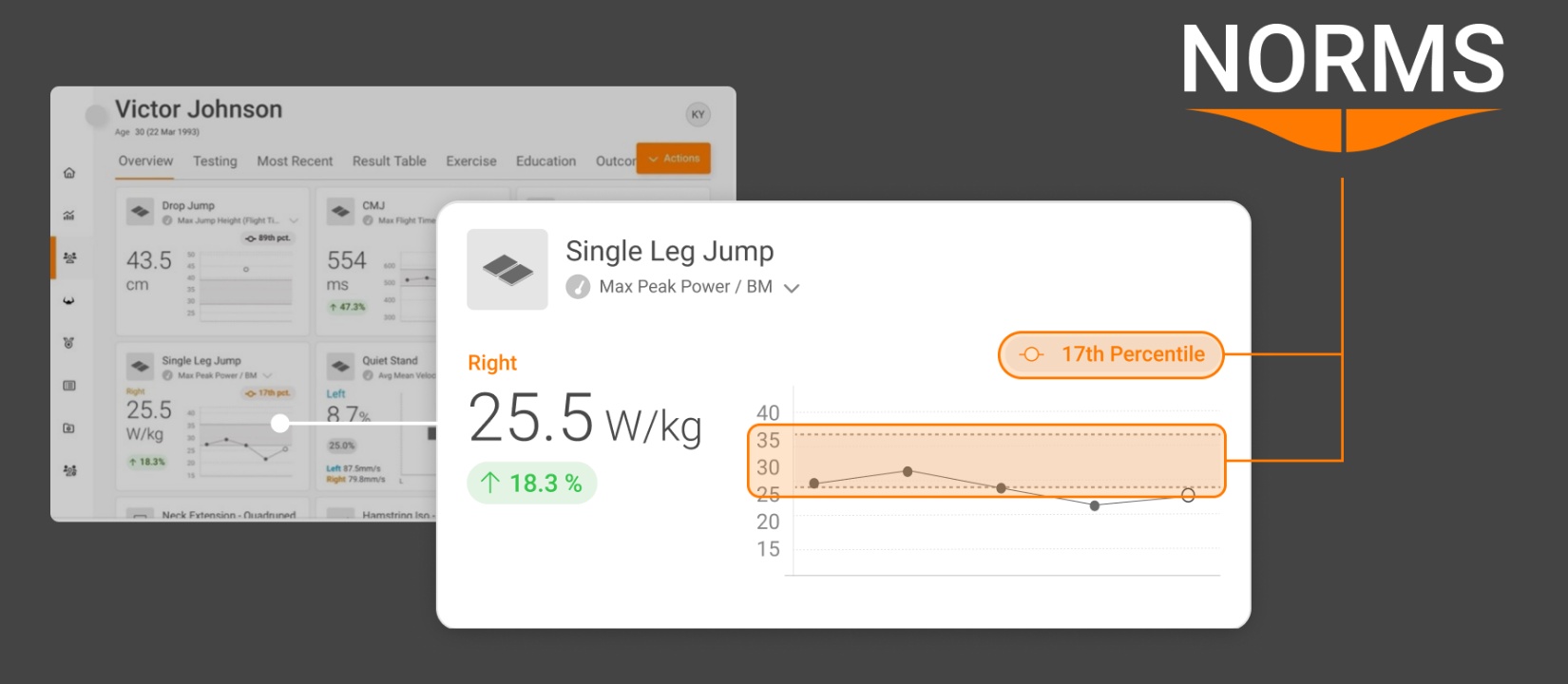 現在透過在 VALD Hub 中嵌入Norms,使用者能夠提供更全面數據庫來評估患者、運動員和人員的數據。