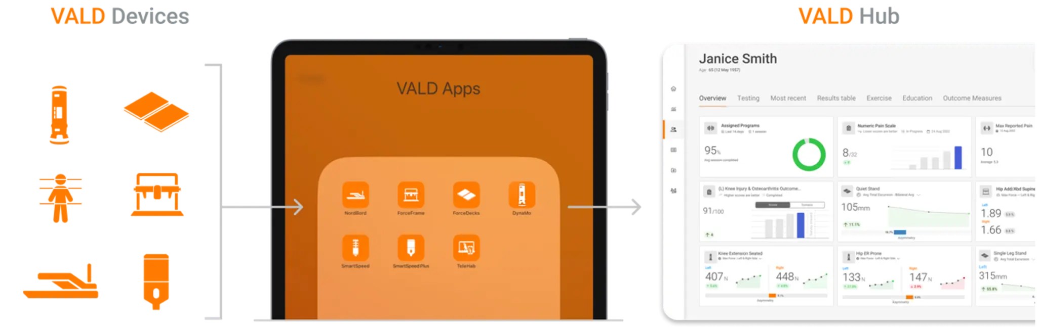 VALD 的設備和應用程式是將所有資料傳送到雲端儲存跟運算:VALD Hub。
