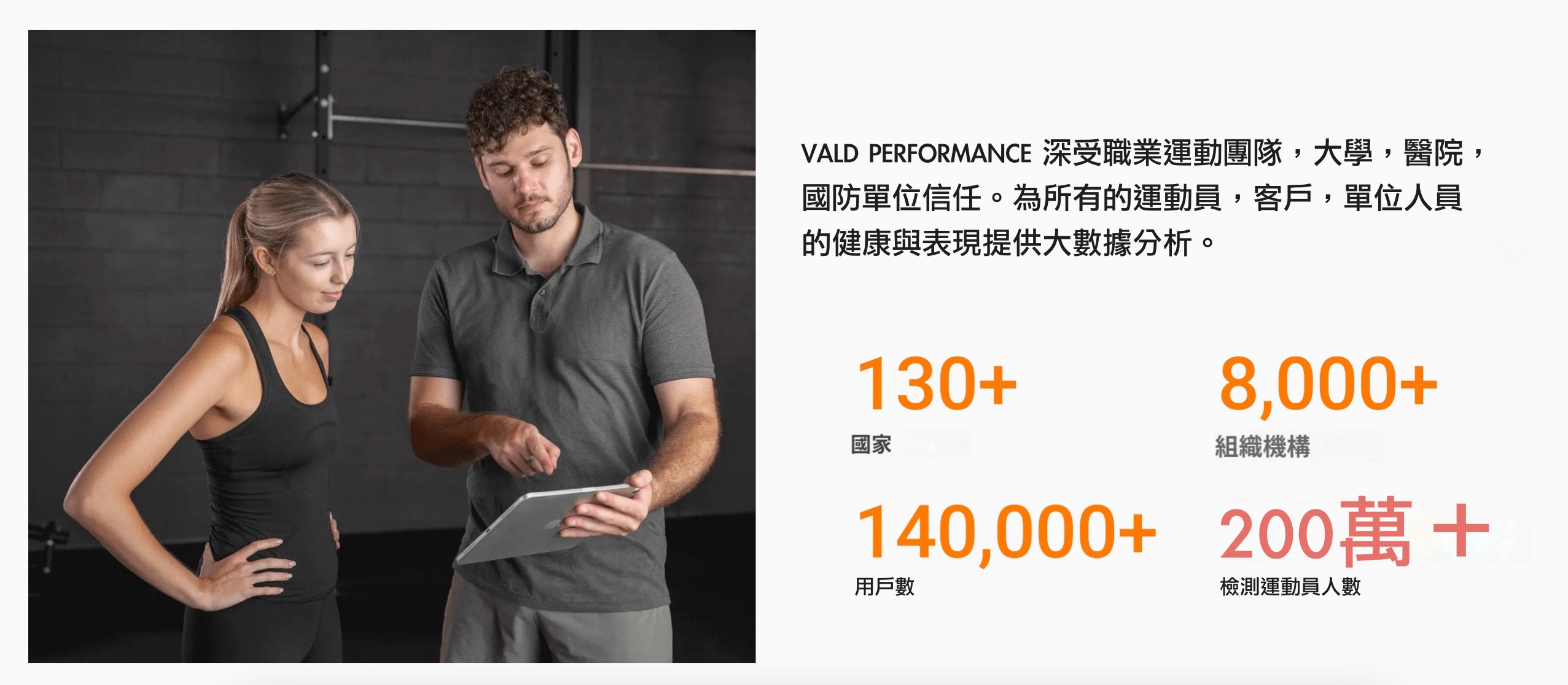 VALD Perfromance 是一家世界領先的 MSK 數據串流服務公司,他再次強調不是販賣運動科學設備為主軸。雖然VALD旗下因爲整合許多硬體設備而聞名,但VALD軟體和雲端資料才是與眾不同的地方。目前已經整合超過200萬運動員人次與破億筆的大數據資料量。每年數據量更是持續跳躍式成長。