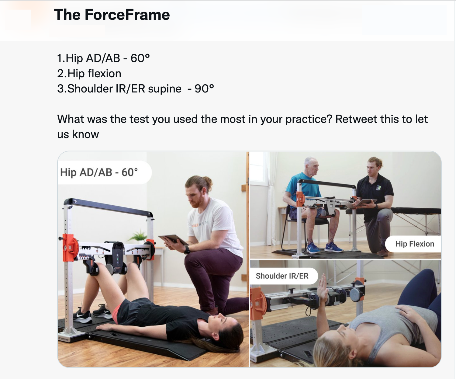 VALD 的 ForceFrame 和 KangaTech 的 KT360 等系統可評估這些關節周圍肌肉的神經肌肉力量、控制力和耐力。運動教練、物理治療師以及體能教練也可以使用它們來評估運動員的活動能力和運動範圍,這是以往體能測試無法顯現客觀評估的數據。