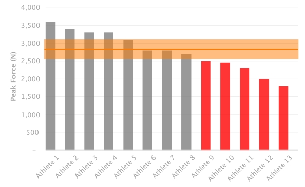 如果體能教練注意到運動員的整體力量或速度在反向運動跳躍或其他測力台測試期間有所下降,他們可以查看個人的工作量總表,看看訓練期間的整體訓練量或強度是否有所增加,甚至是到比賽。如果選手的整體負荷過高,他們的恢復不足,或者兩者同時發生,這可以解釋為什麼選手突然數據下降到通常的平均以下。