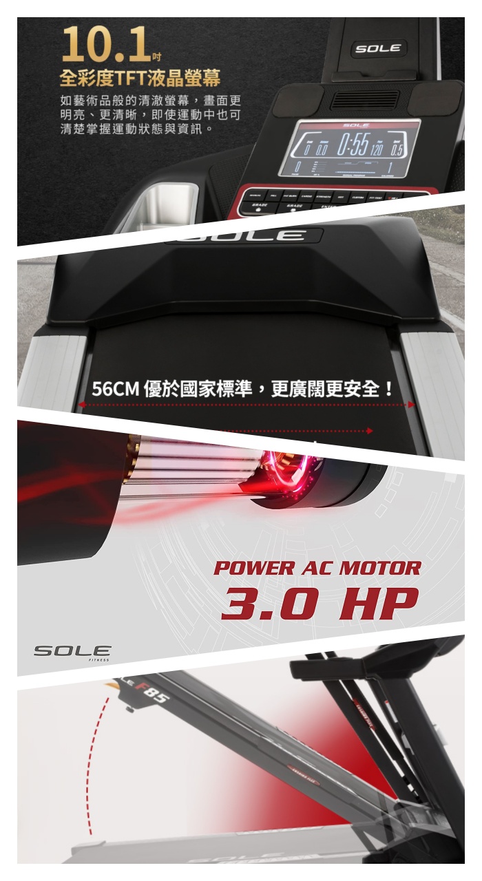 | 跑步機依照使用目的推薦 Johnson Matrix TF30、SOLE TT8、SPIRIT CT800系列 長時間慢跑 輕商用: Johnson VISION系列 、SOLE F80, F85, TT8系列 快走+斜坡 #Jonson Horizon系列、BH、XTERRA、SOLE F63 65 家中散步 小跑一下 輝葉、BLADEZ等品牌 |