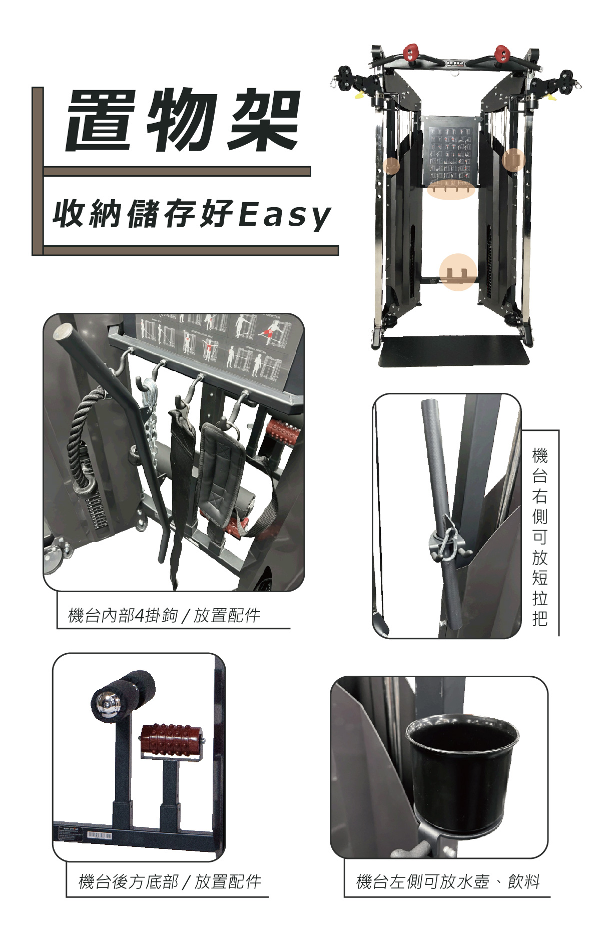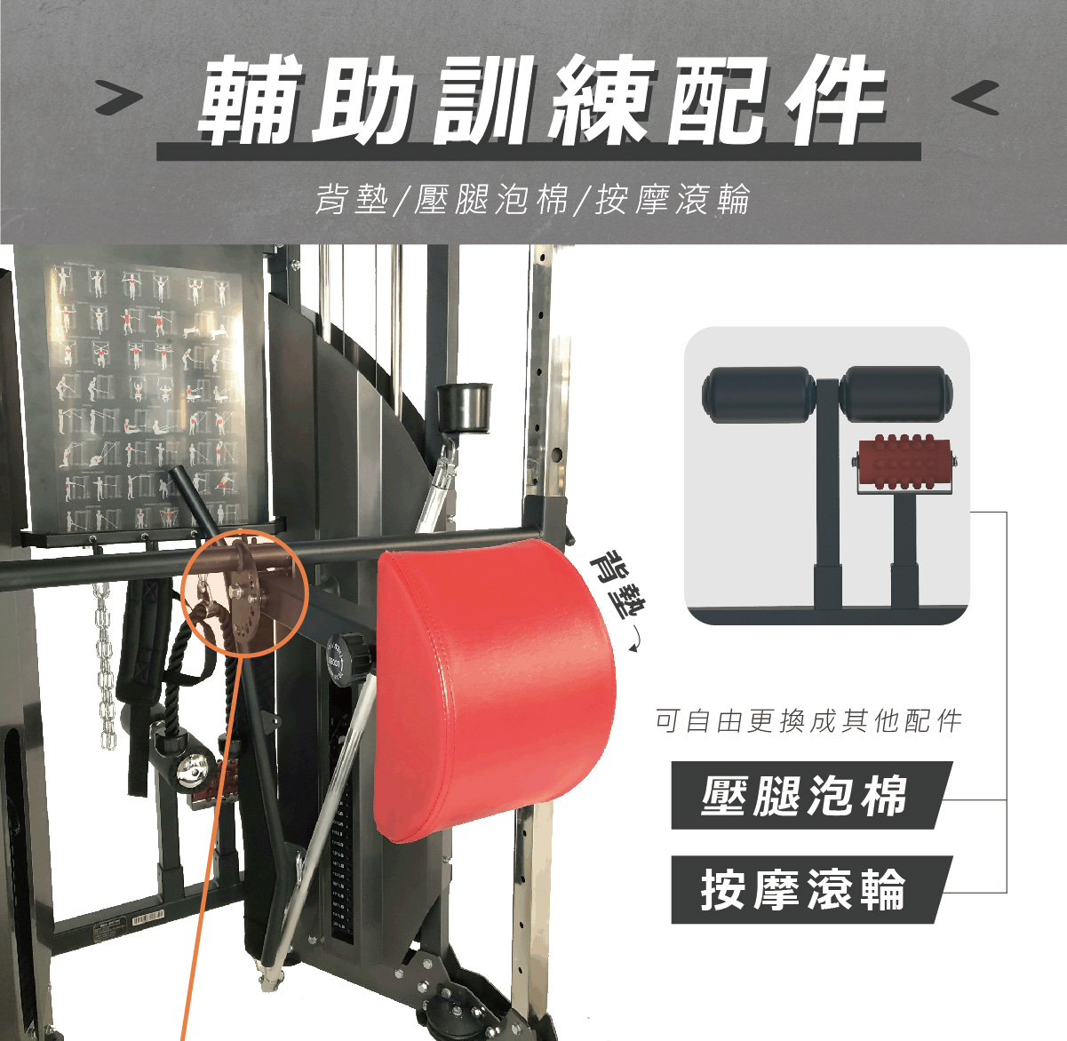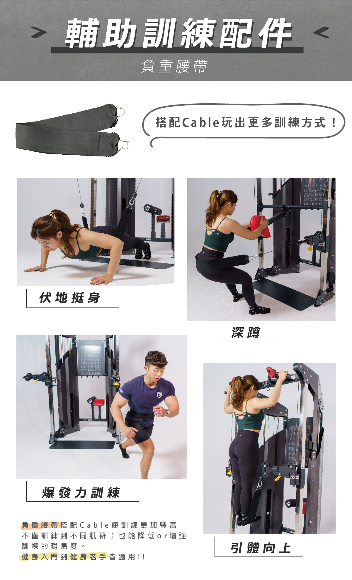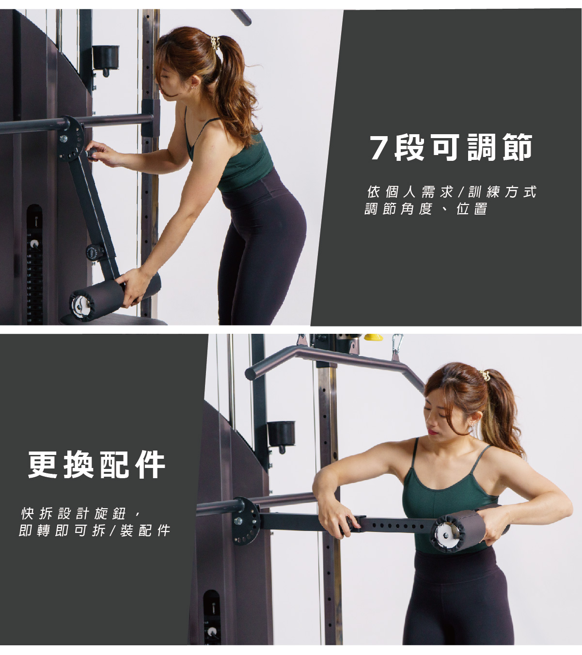 全機使用可調節配重塊訓練不用搭配傳統槓片