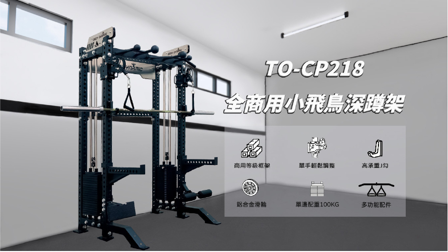 這台 TO-CP218 就像是一位「健身房裡的瑞士刀」:它將深蹲架的強悍承重和小飛鳥滑輪的靈活多變揉合在一起,讓您在有限的空間內,既能像坦克一樣進行重裝深蹲,又能像體操運動員一樣進行精細的纜線雕塑,是一台全方位的重訓訓練中心。