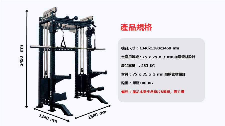 • 商用等級結構: 機台採用 75 x 75 x 3 mm 的加厚管材設計,確保整體的穩定性與耐用度。