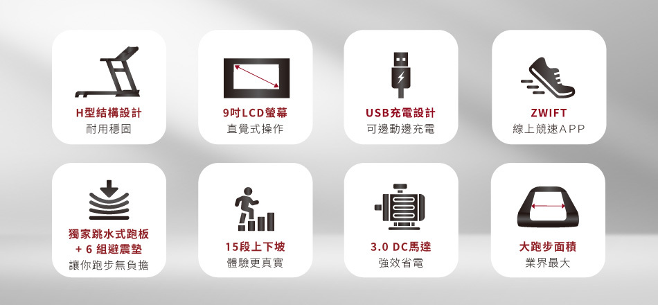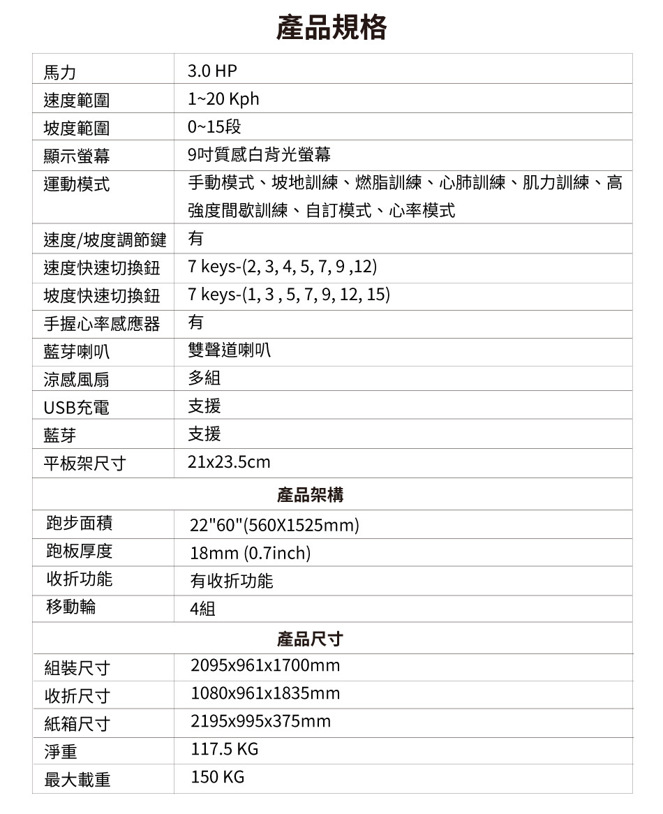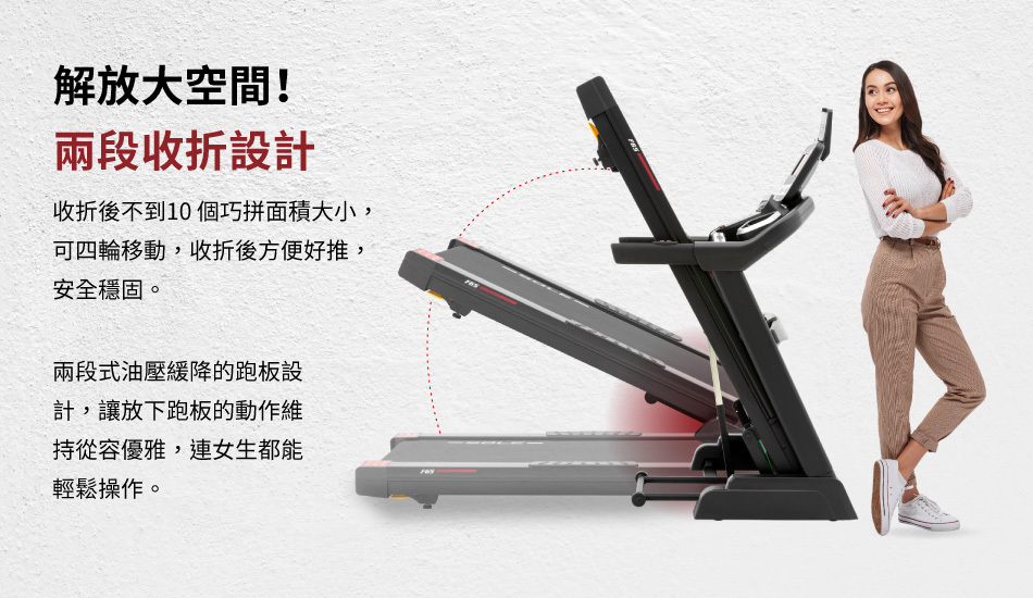 ● 跑板寬度大升級至 56公分超舒適寬跑板,讓跑步更順暢