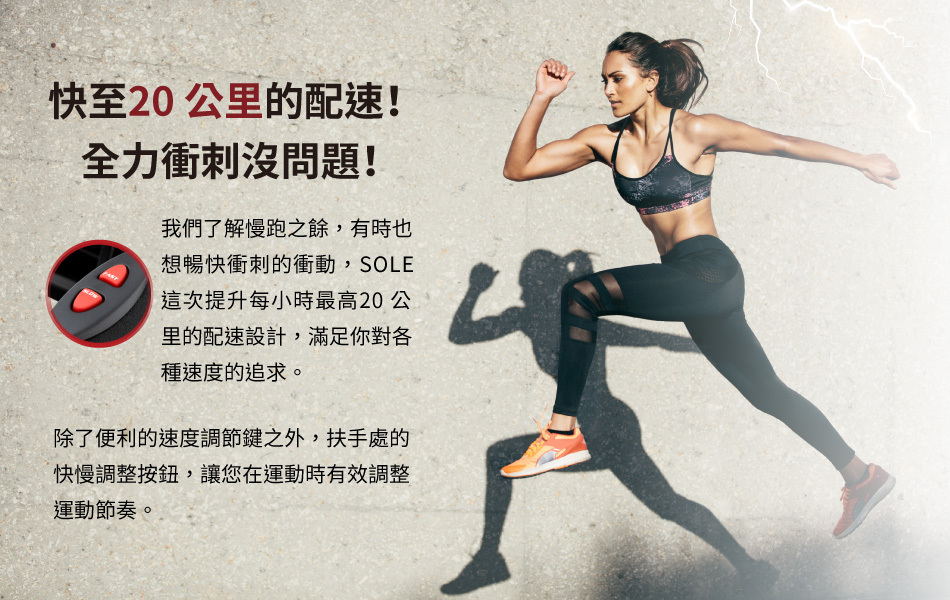 ● 手扶兩側設計速度快捷鍵,提高跑步順暢力