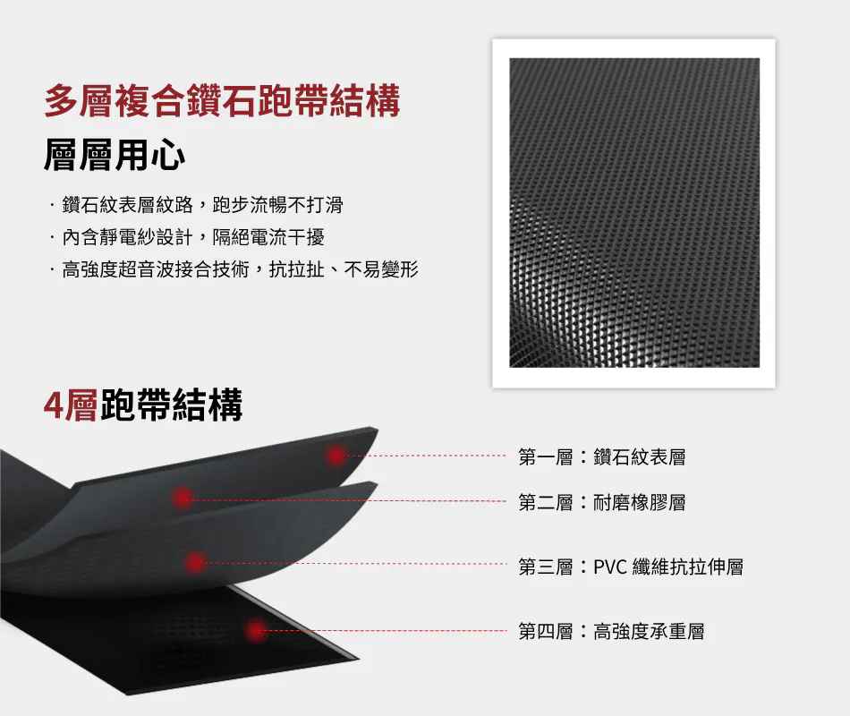 ● 跑板兩側設計低階差止滑板,跑步同時顧安全