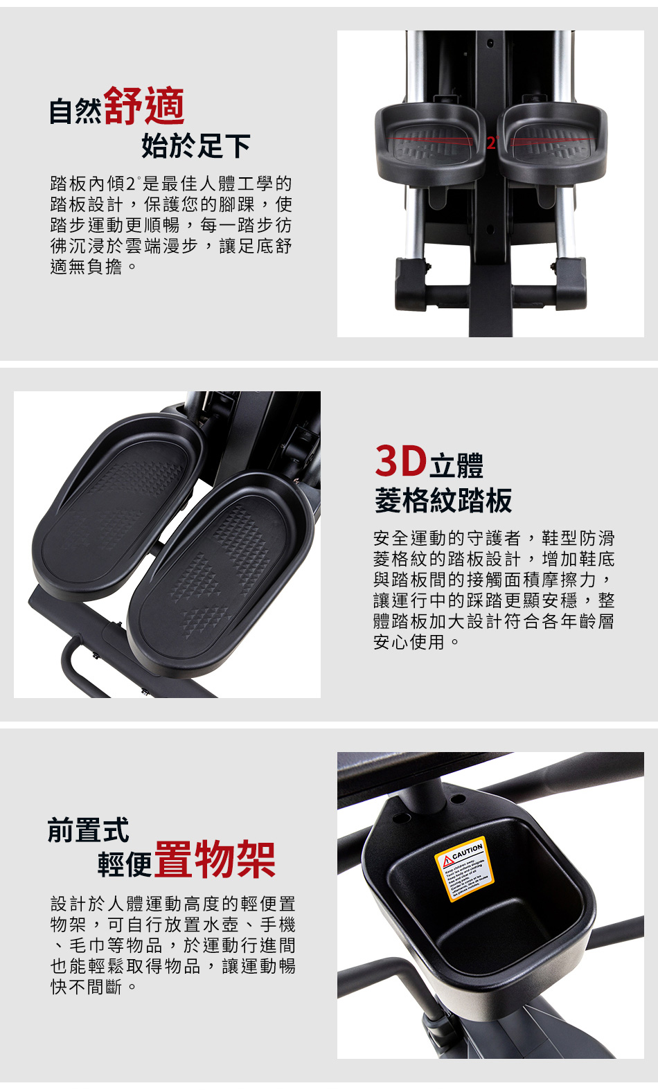 ● 專家共同研發內傾 2°踏板,符合人體工學減少運動傷害