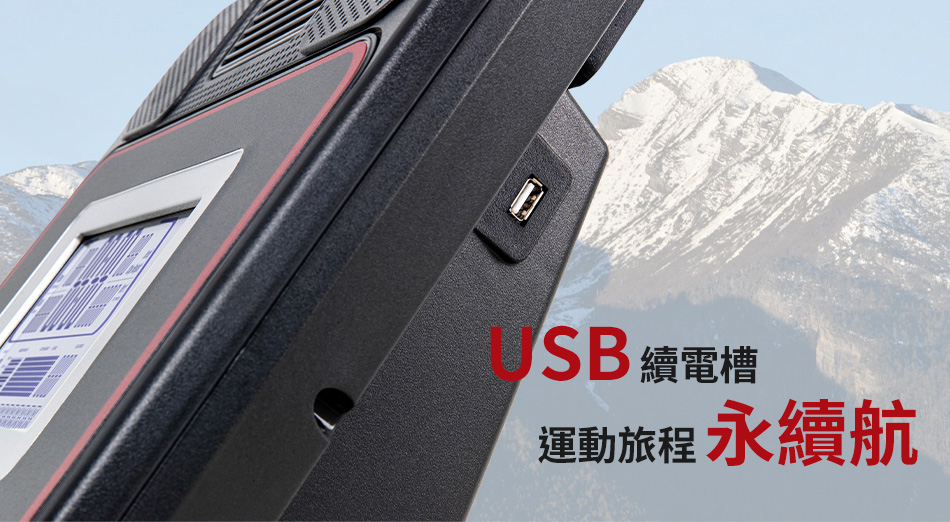 ● USB 端口可在鍛鍊時為智能設備充電