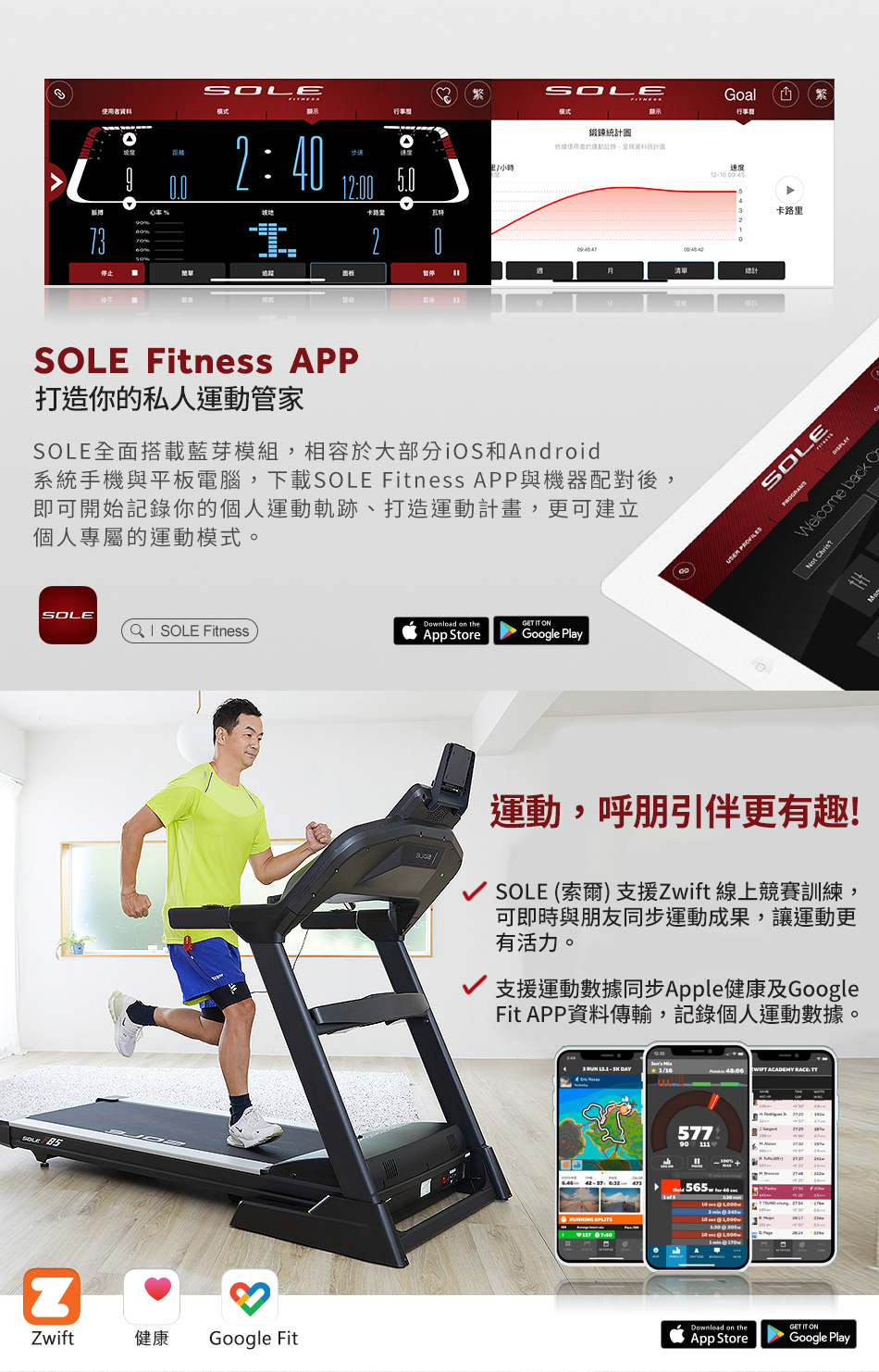 ● SOLE FITNESS APP 搭載藍芽4.0串接,創造運動日曆完整記錄運動