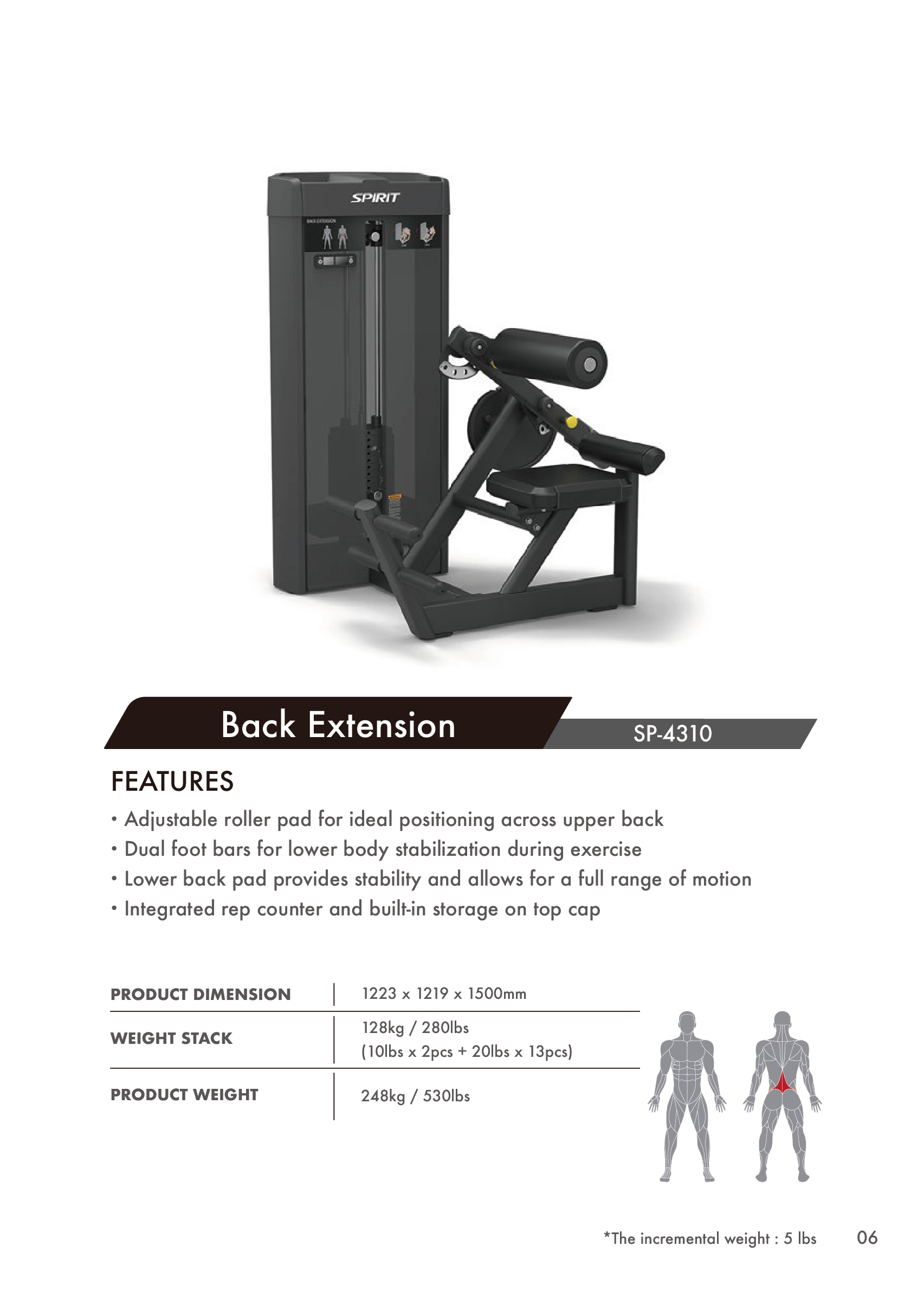 [商用] SPIRIT 單站式訓練機 商用重訓 SP-4310 Back Extension 背部伸張機