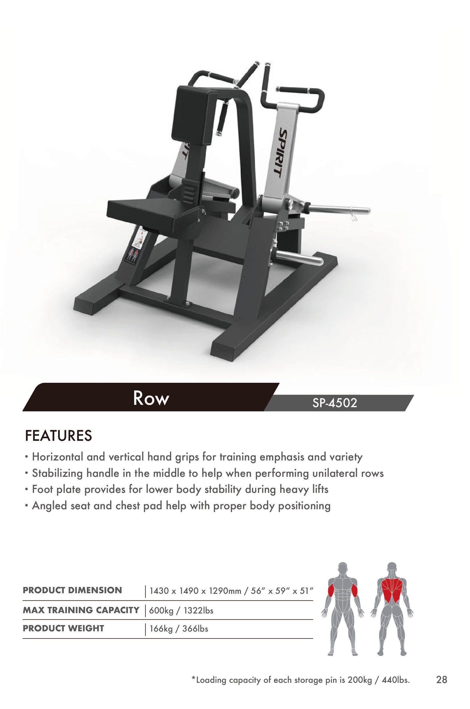 [商用] SPIRIT 商用重訓 SP-4502 Row 掛片式划船訓練機