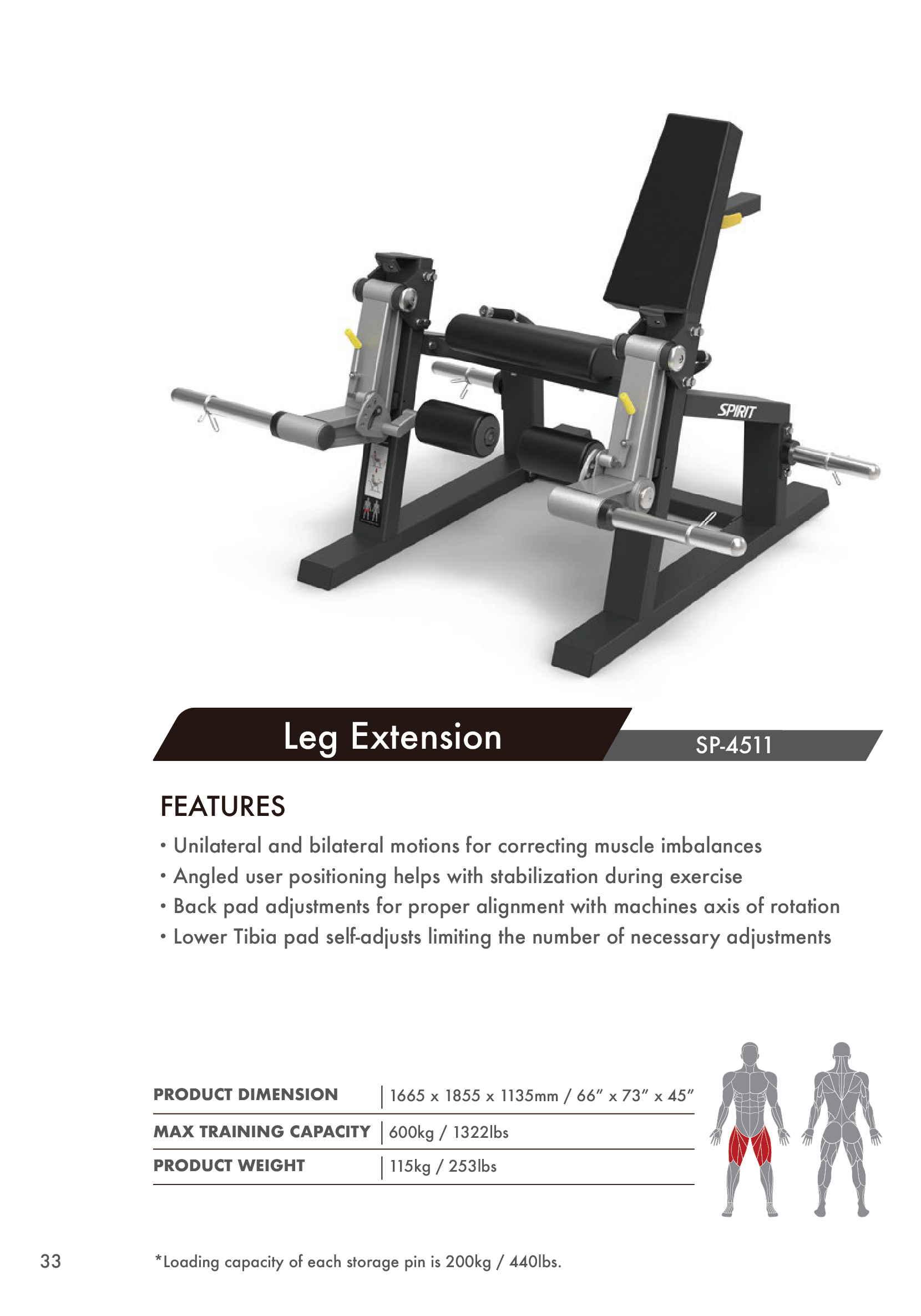 [商用] SPIRIT 商用重訓 SP-4511 Leg Extension掛片式腿伸展訓練機