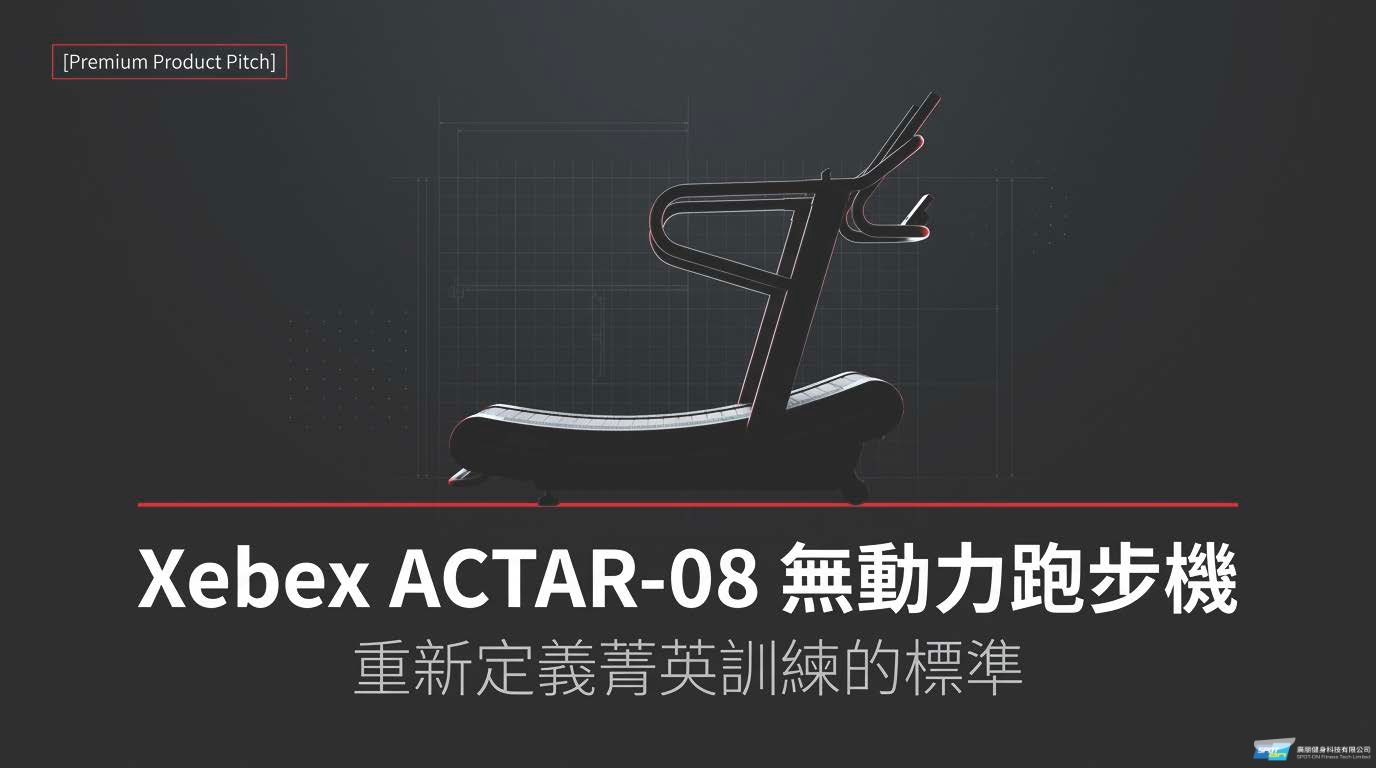 型號 ACTAR-08 是 XEBEX 履帶無動力跑步機 (XEBEX RUNNER SMART CONNECT)。這是一款無需插電、透過跑者自身運動產生動能的弧形無動力跑步機。榮獲 FitProf 肯定!Xebex ACTAR-08 提供無速限衝刺、30% 高燃脂效率及獨家阻力調節倒退走模式。157kg穩固機身,專為專業場館與公設健身房設計