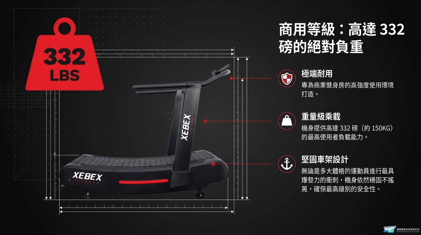 - 重型機身與高穩定度:機身重達 332 磅,在進行最劇烈的衝刺訓練時,精密設計的跑台依然能保持穩固,不會產生打滑或跑步機速度與雙腿不協調的感覺。